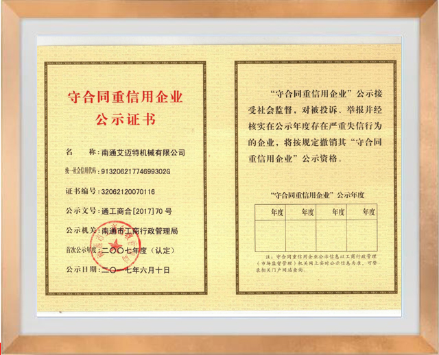 守合同重信用企業(yè)公示證書